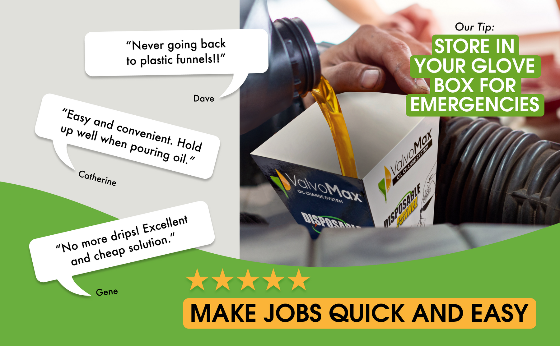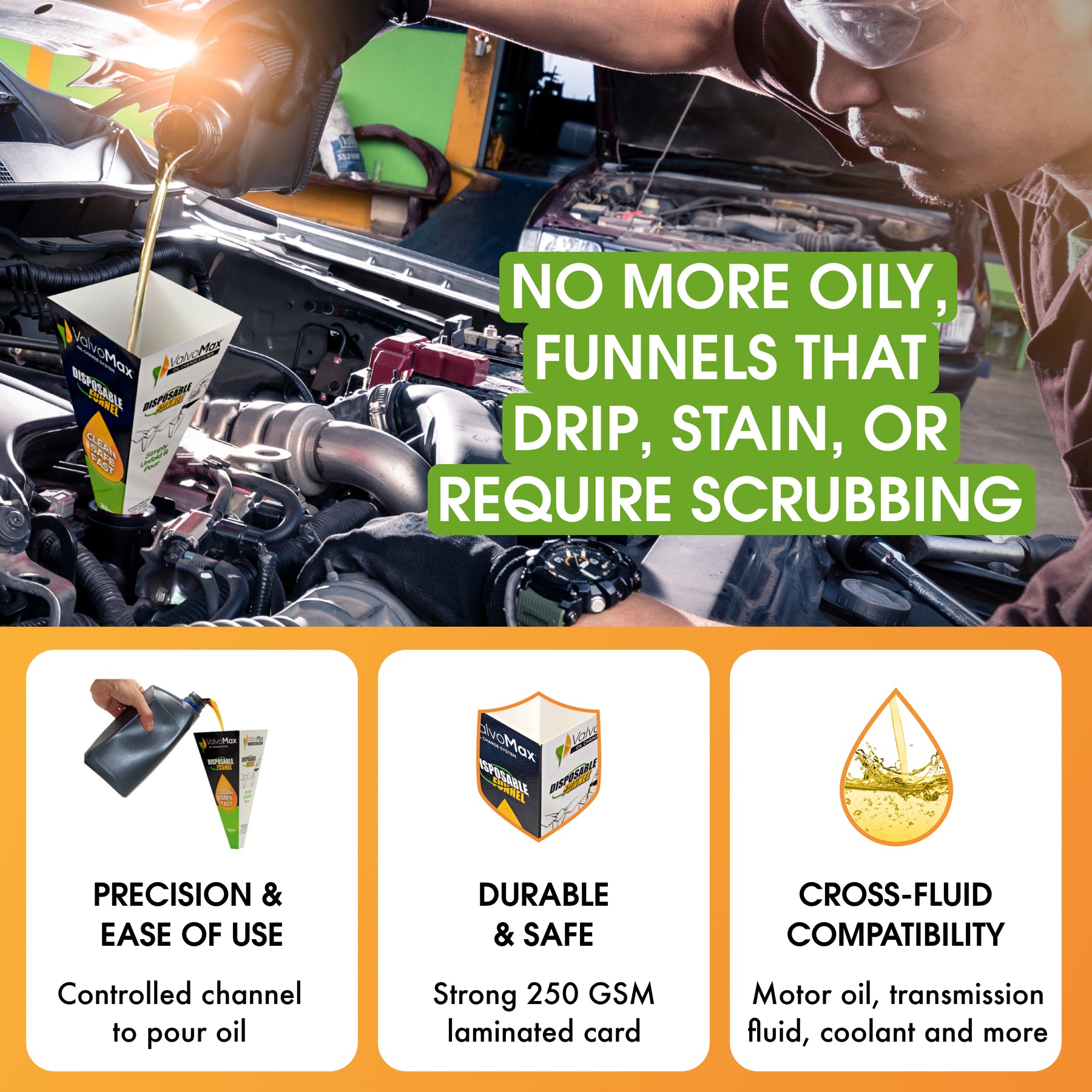 What’s included: 10L oil drain bag, FlowVent bag attachment, oil slick dipstick cleaner, 10-pack 8oz disposable funnels, 10 oil change reminder stickers